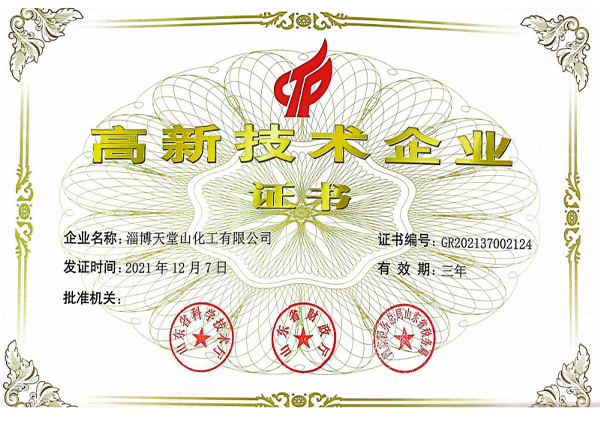 公司產(chǎn)品符合國家的產(chǎn)業(yè)政策,各種手續(xù)齊全,通過了環(huán)保、衛(wèi)生、消防、安全生產(chǎn)許可等各項(xiàng)驗(yàn)收,企業(yè)化學(xué)品安全標(biāo)準(zhǔn)化三級(jí)達(dá)標(biāo)驗(yàn)收,并且通過了ISO9001質(zhì)量管理體系認(rèn)證、ISO14001環(huán)境管理體系、ISO45001職業(yè)健康管理體系,先后被有關(guān)部門授予“市級(jí)重合同守信用企業(yè)”“消費(fèi)者滿意單位”“質(zhì)量、計(jì)量管理先進(jìn)單位”“勞動(dòng)關(guān)系和諧企業(yè)”“企業(yè)免檢單位”“淄博市專精特新中小企業(yè)”“山東省化工明星單位”“山東化工發(fā)展?jié)摿?0強(qiáng)”“淄博市智能車間”“山東省創(chuàng)新型中小企業(yè)”“科技型中小企業(yè)”“高新技術(shù)企業(yè)”“山東省專精特新”等稱號(hào)。